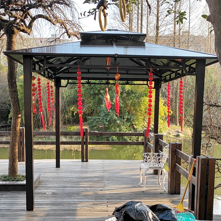 没有请师傅安装,都是自己动手,不过需要人帮忙,2个人基本上可以完成。实物看上去更好看,特别结实,不怕被风吹倒,这款庭院凉亭我第一眼就看上了,价格也不贵,家里老人很喜欢这款庭院凉亭,经常坐在里面听小曲儿