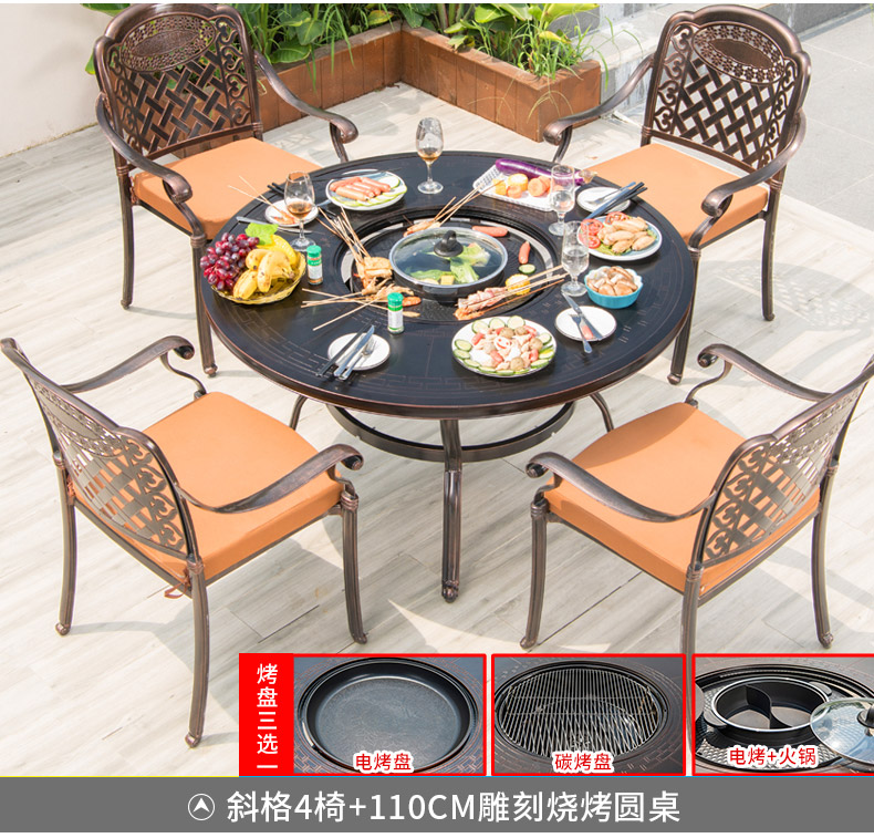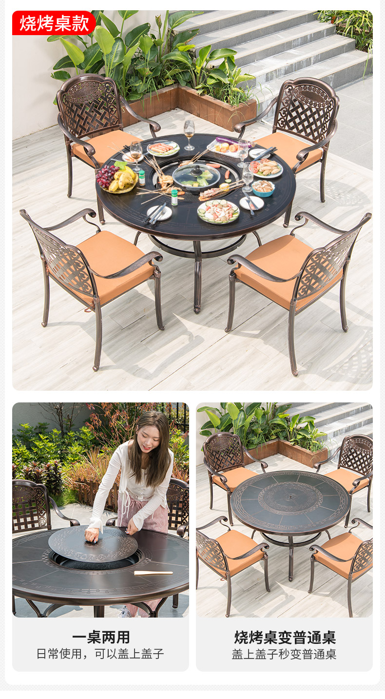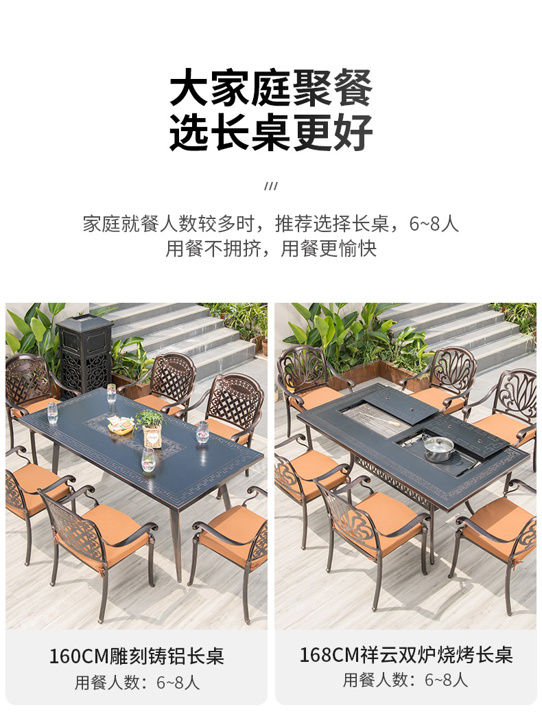 藤朝防雨户外铸铝桌椅烧烤组合休闲庭院花园别墅露天室外耐用长桌