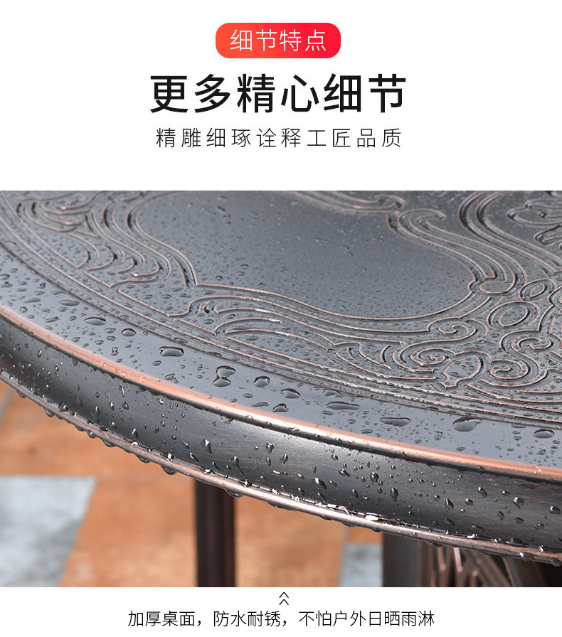 产品简介:藤朝防雨户外铸铝桌椅烧烤组合休闲庭院花园别墅露天室外耐用长桌...