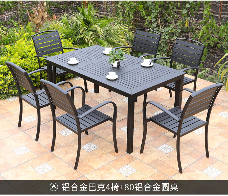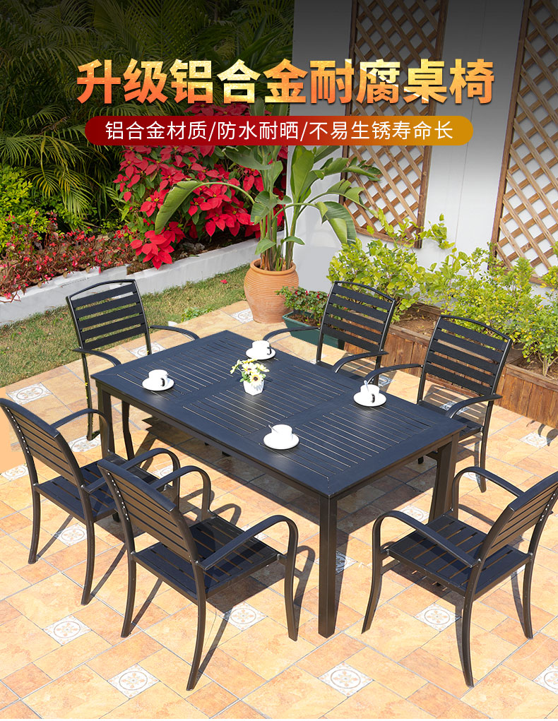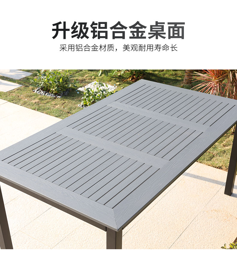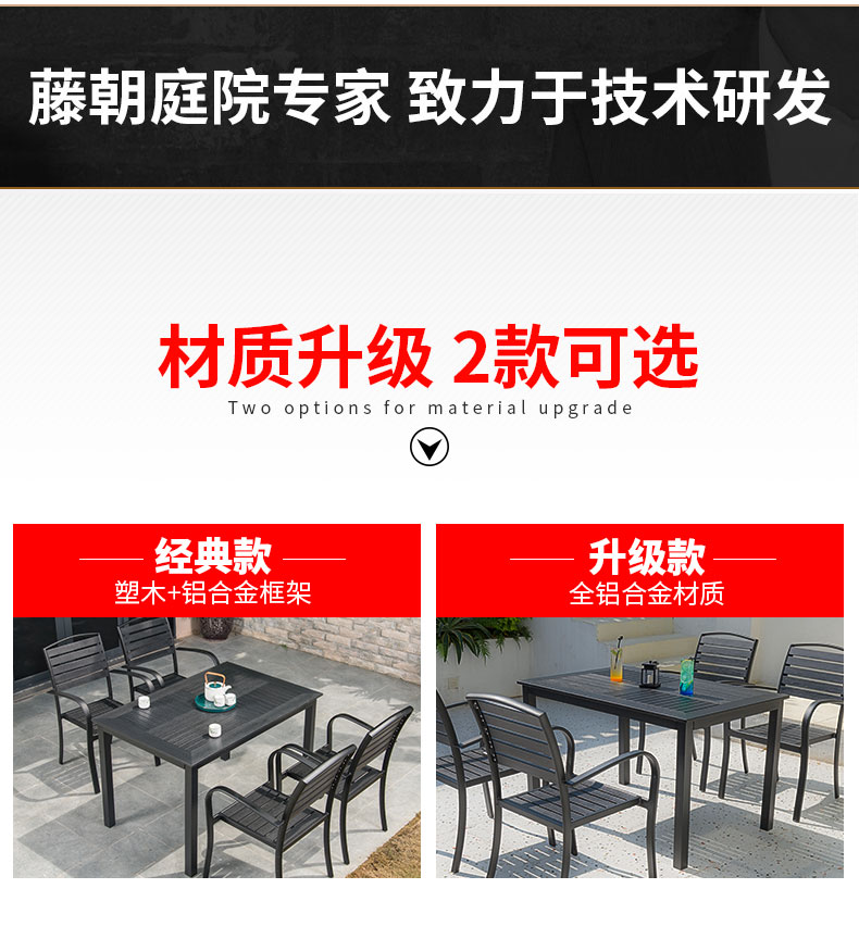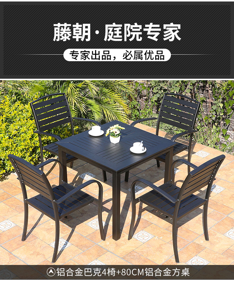 产品简介:藤朝铝合金户外庭院桌椅组合室外院子露天台休闲铸铝花园塑木桌椅...