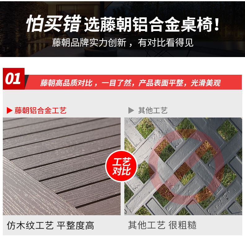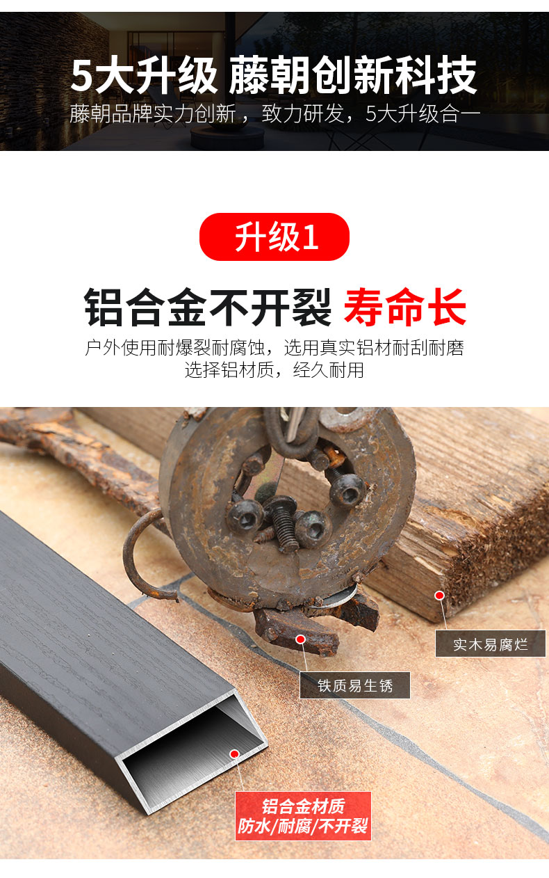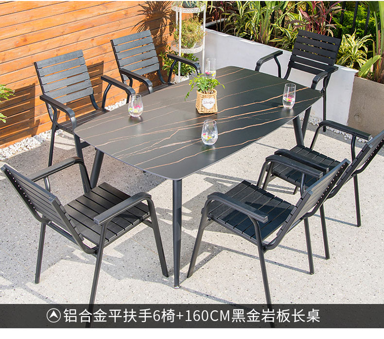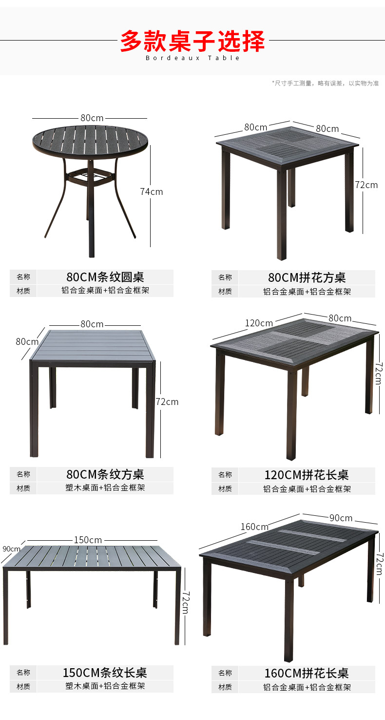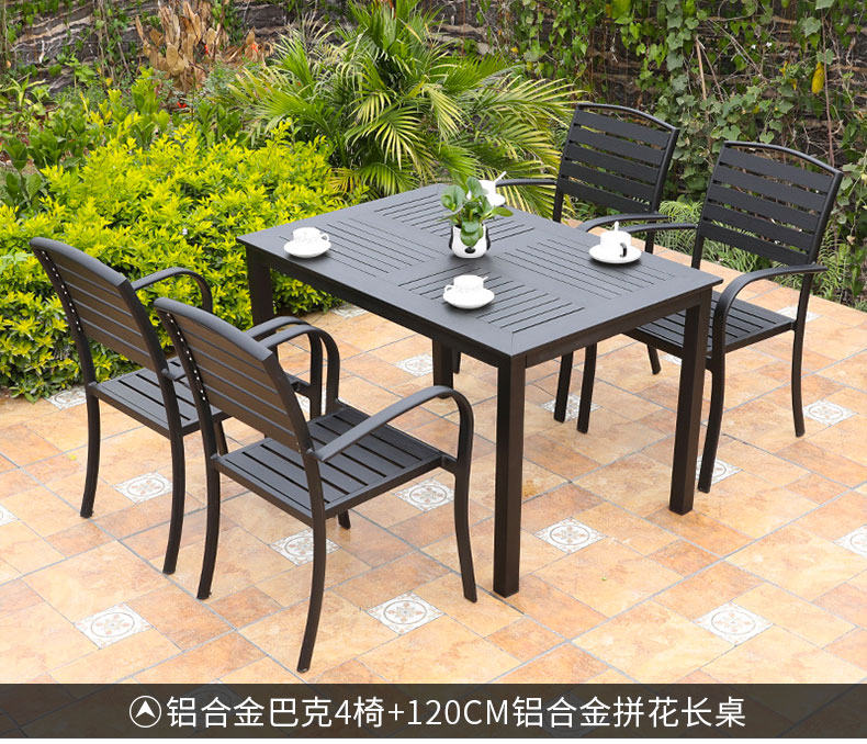 产品简介:藤朝铝合金户外庭院桌椅组合室外院子露天台休闲铸铝花园塑木桌椅...