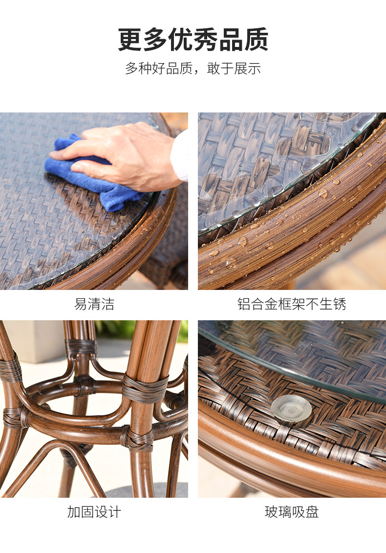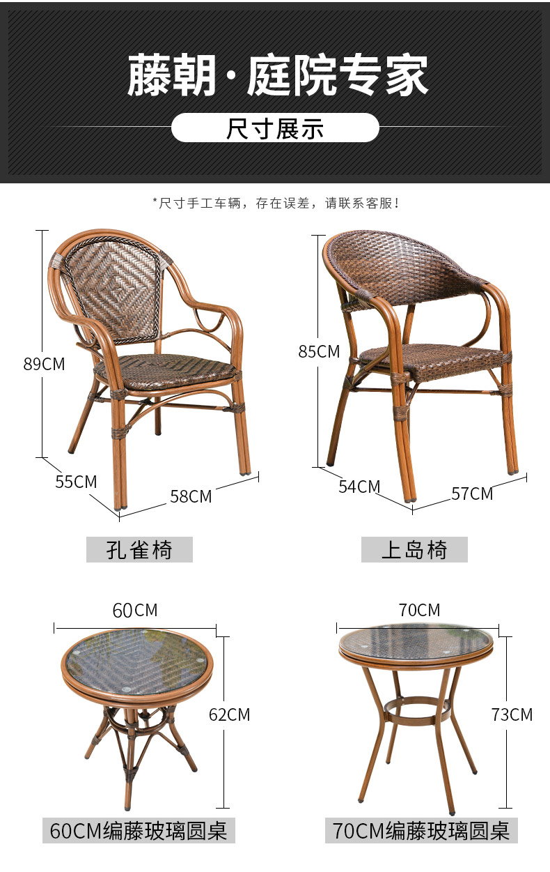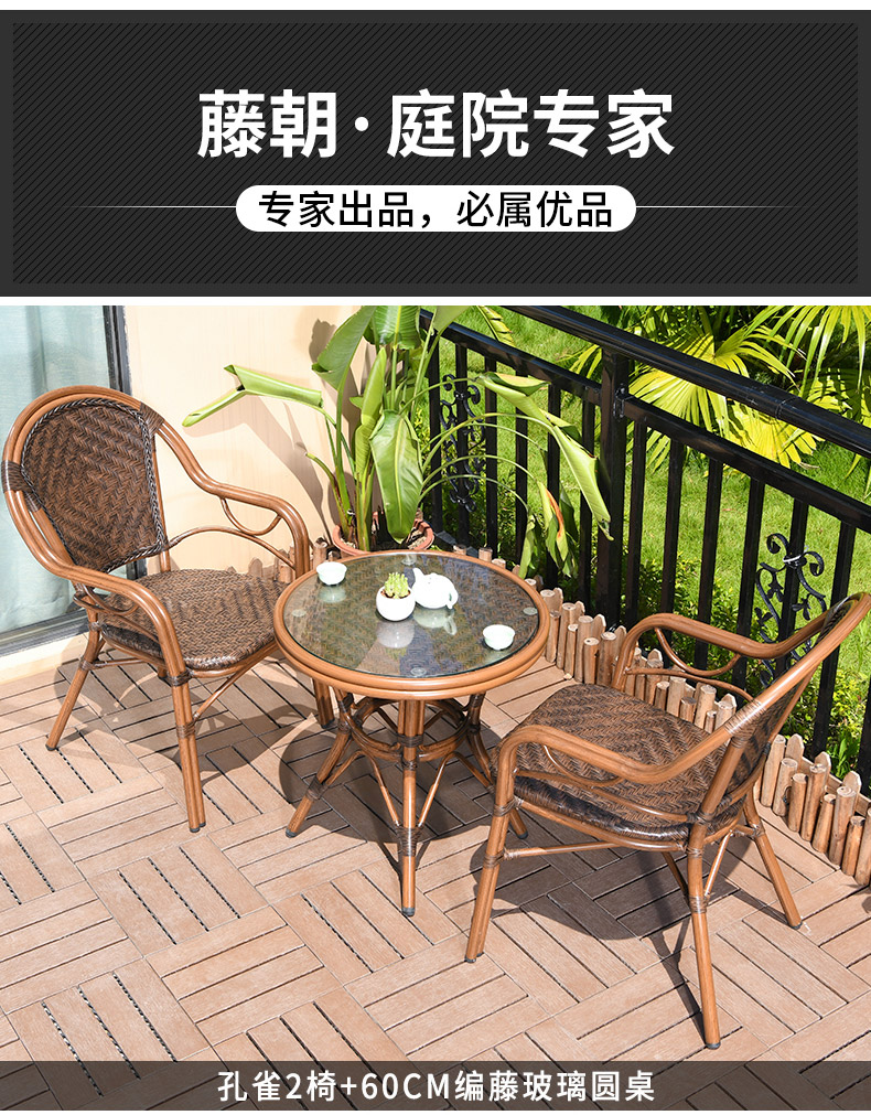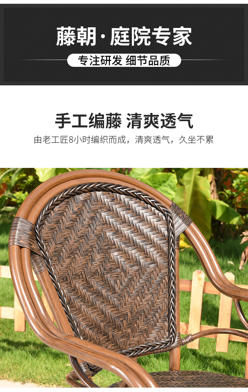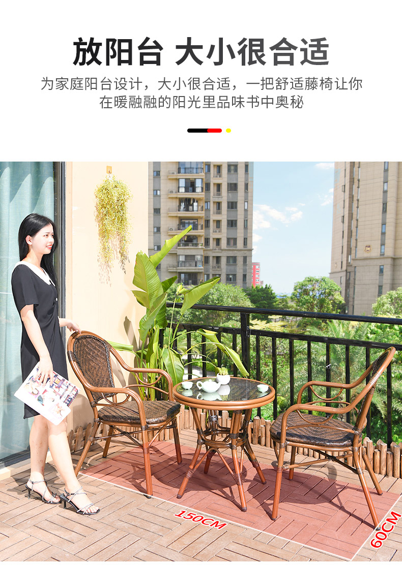 产品简介:藤朝藤椅三件套阳台小桌椅茶几家用休闲喝茶编中式奶茶店室外咖啡...