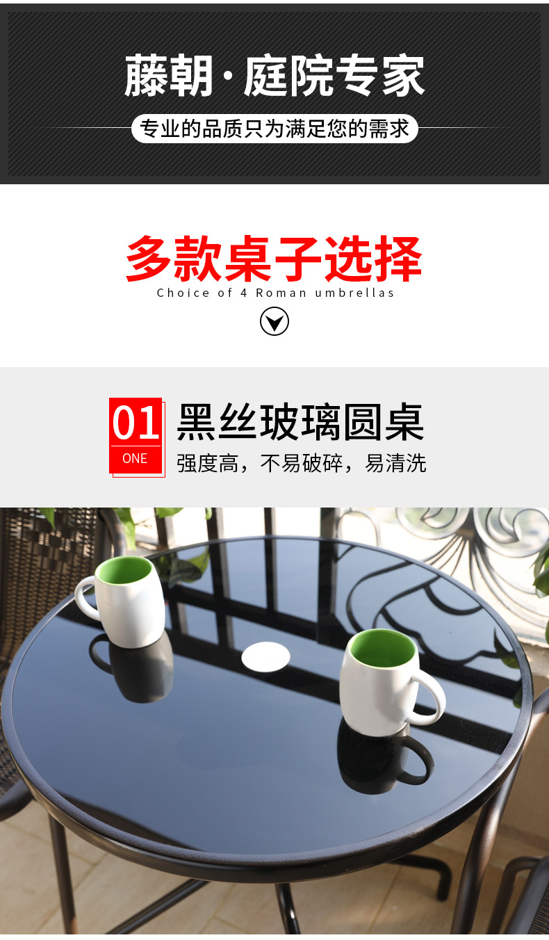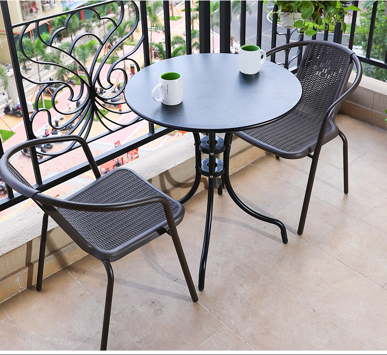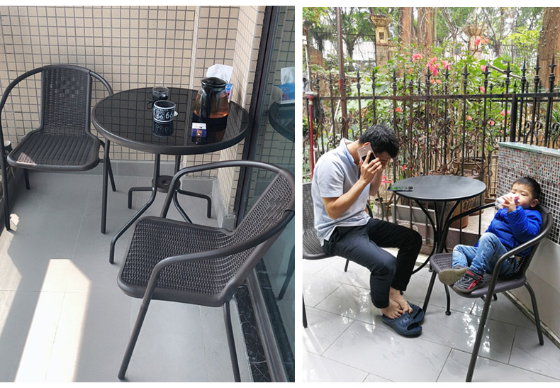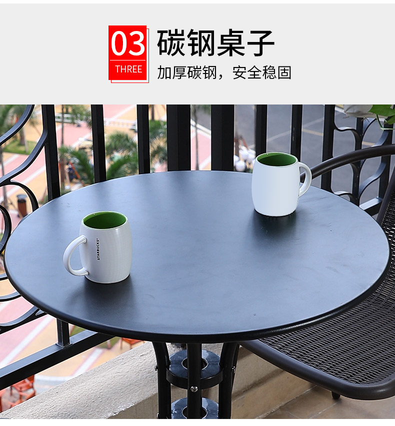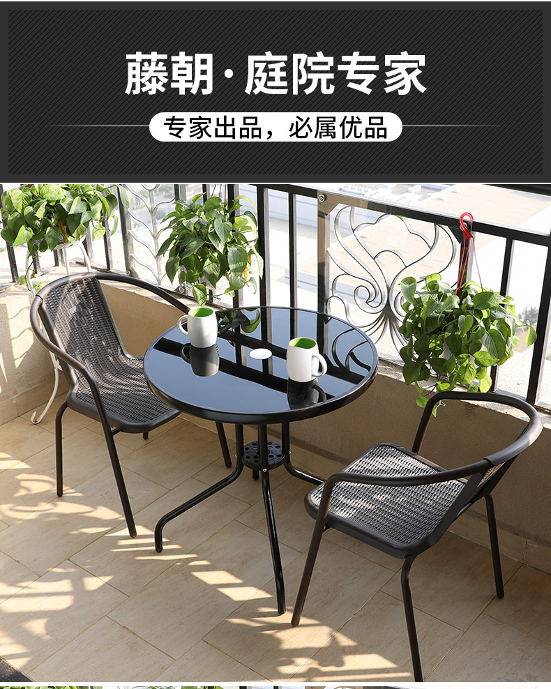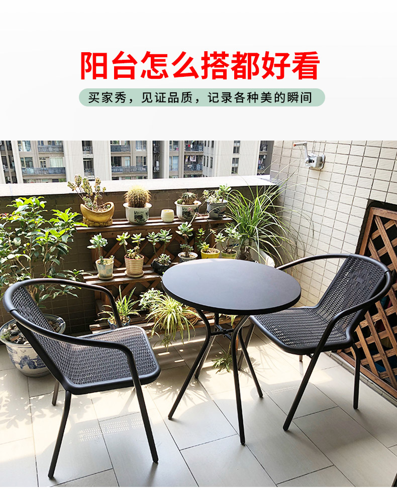 产品简介:阳台小桌椅户外庭院露台休闲小茶几铁艺小圆桌椅组合藤椅三件套...