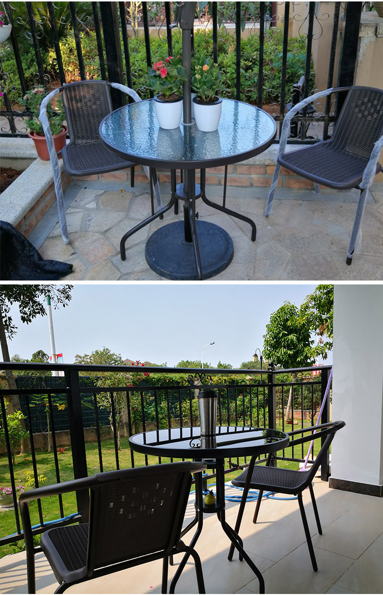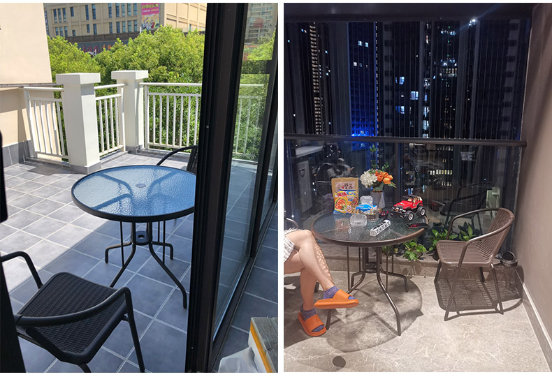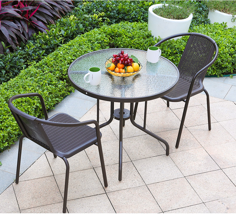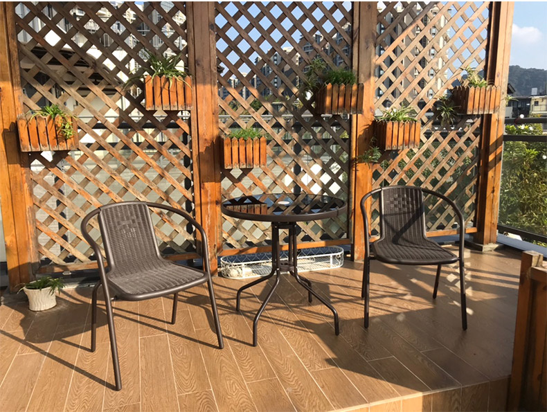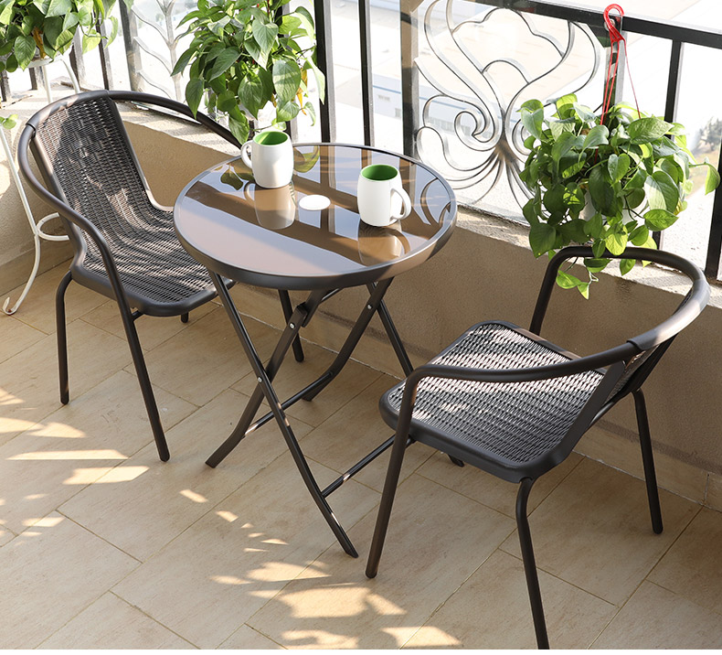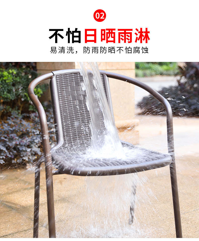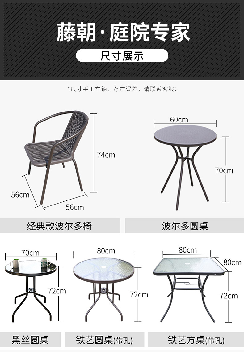 产品简介:阳台小桌椅户外庭院露台休闲小茶几铁艺小圆桌椅组合藤椅三件套...