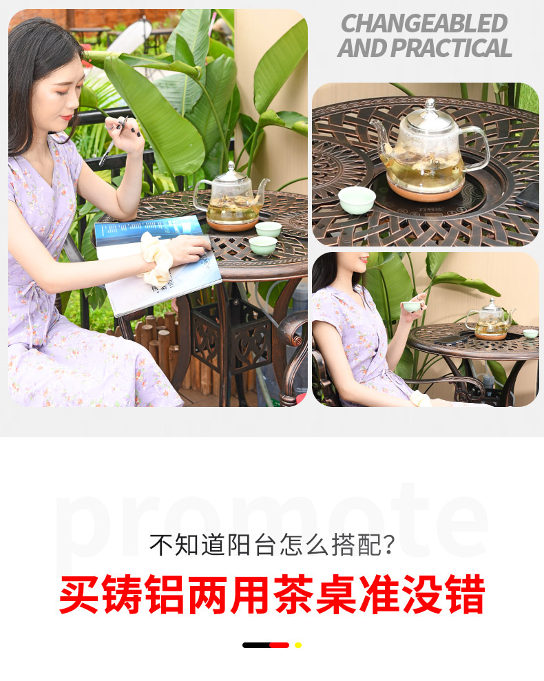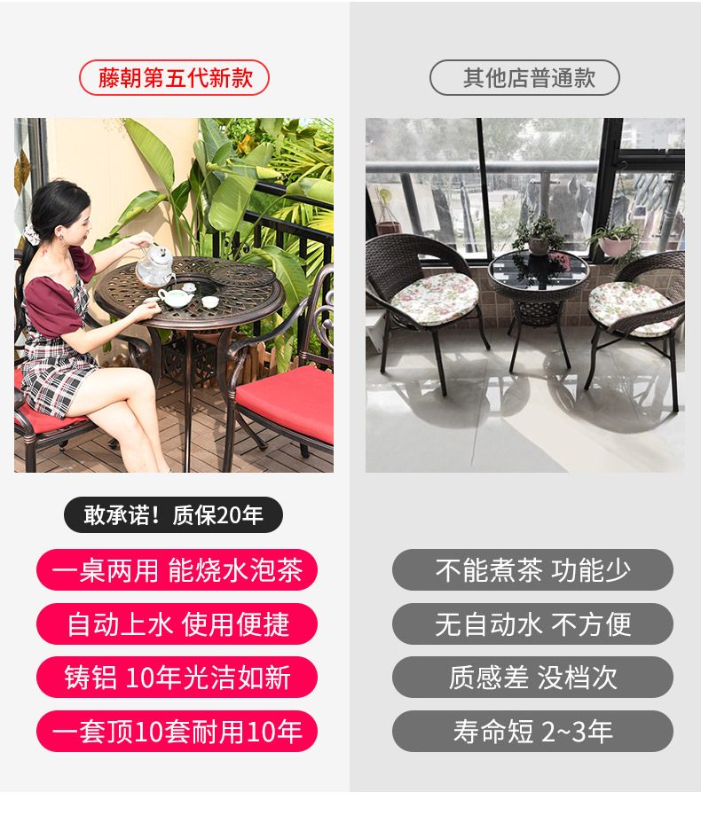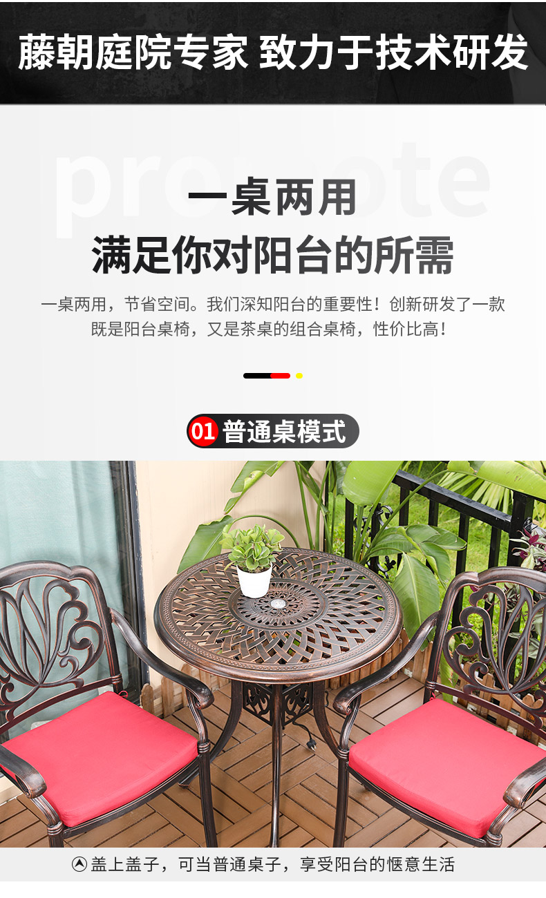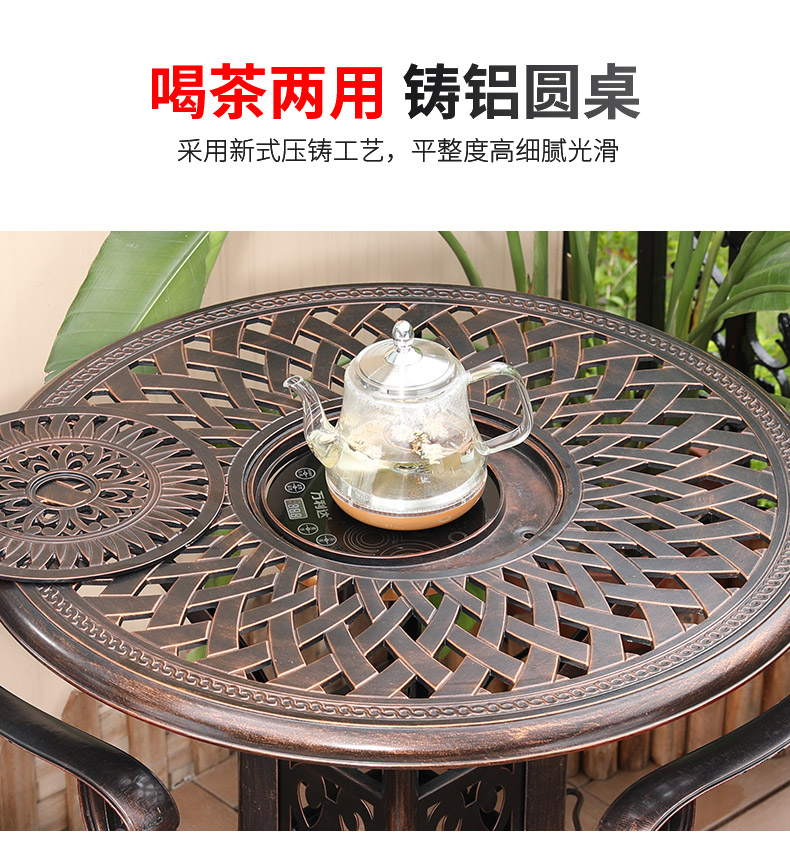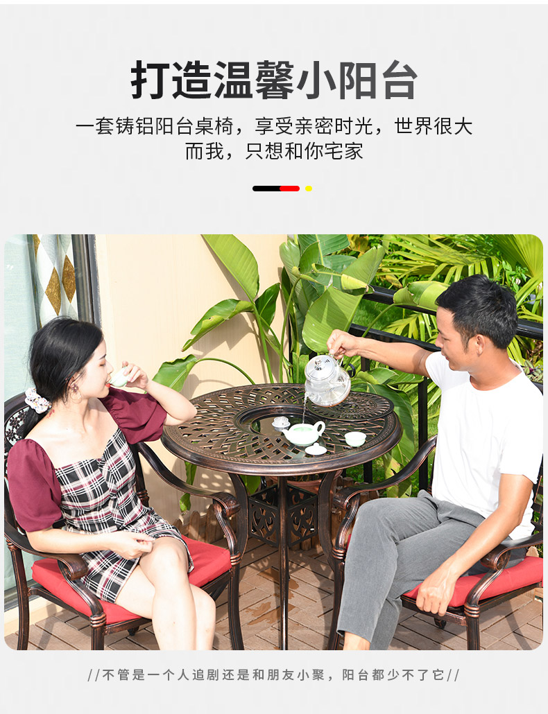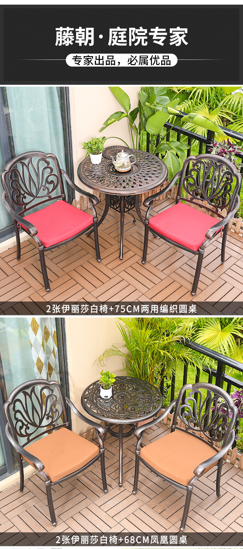 产品简介:藤朝欧式阳台茶桌椅三件套泡喝茶两用休闲铸铝美式桌椅小茶几组合...