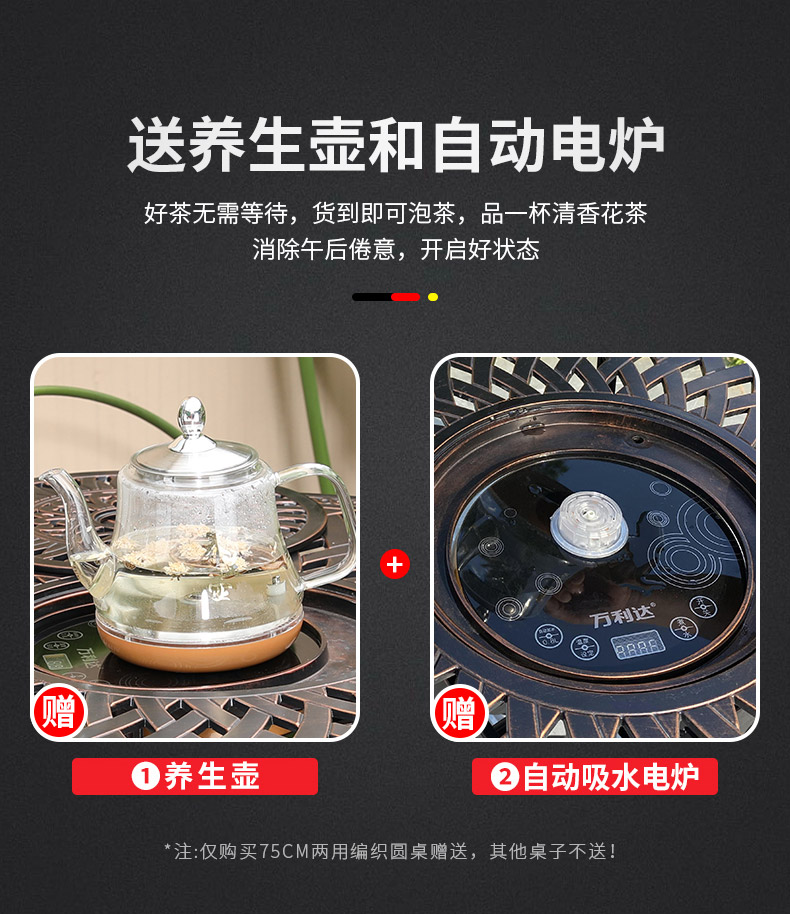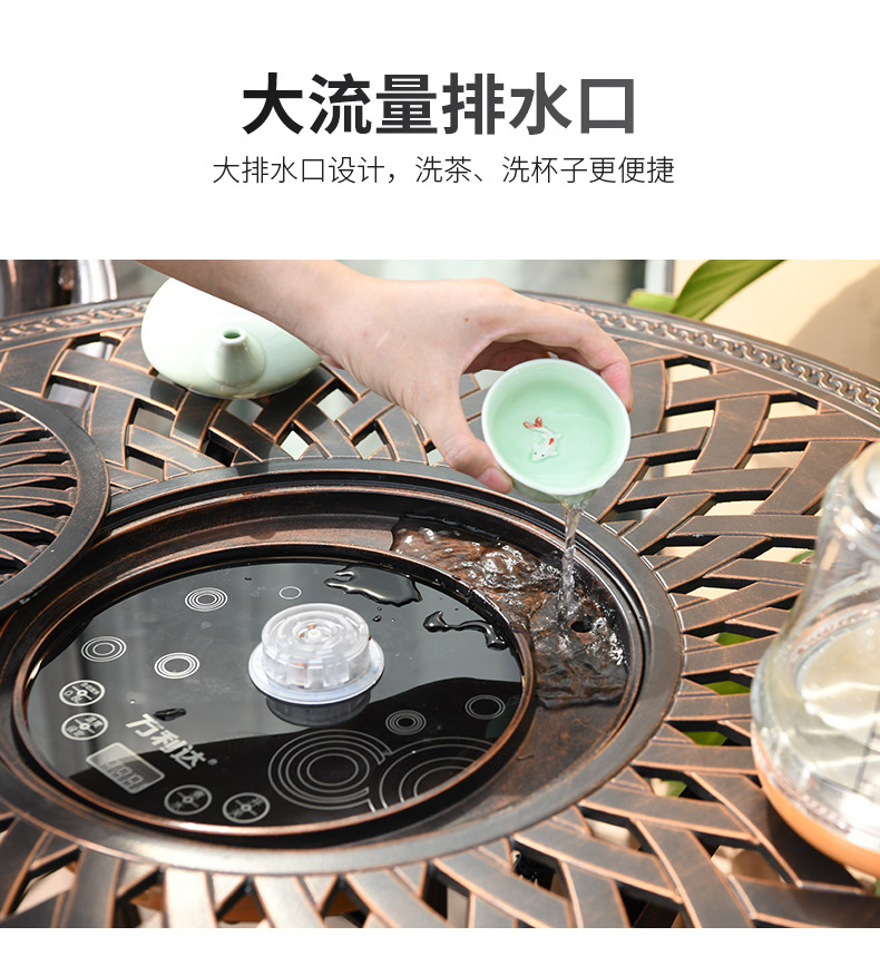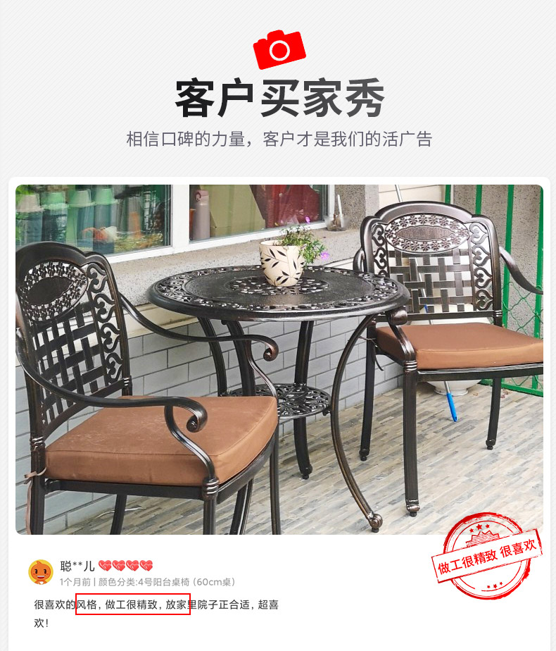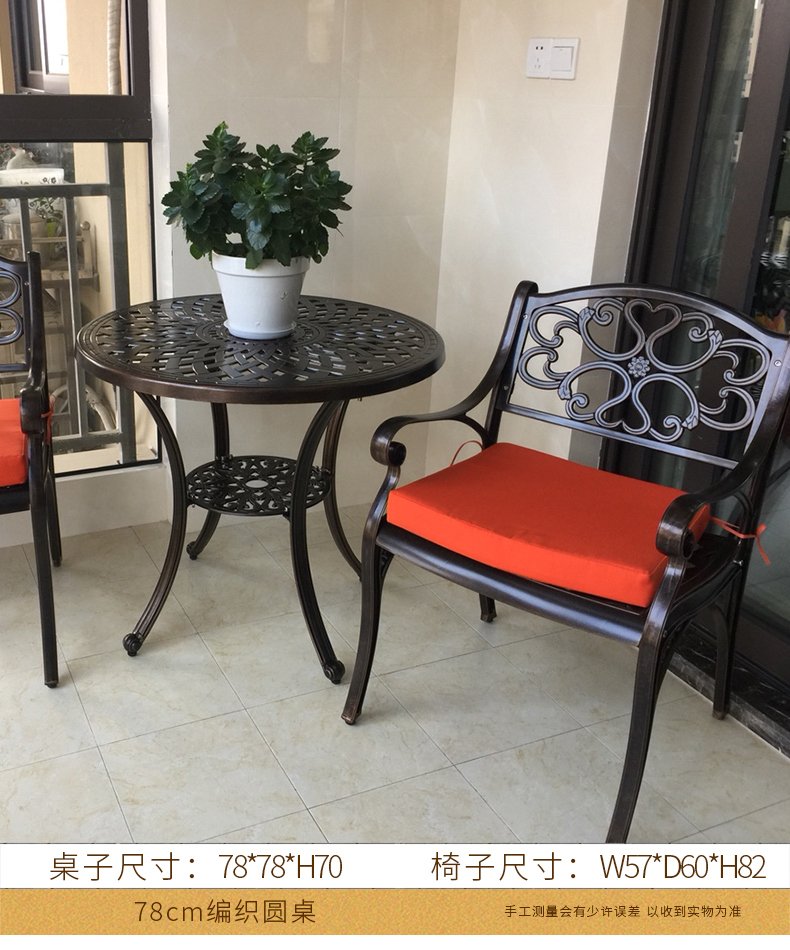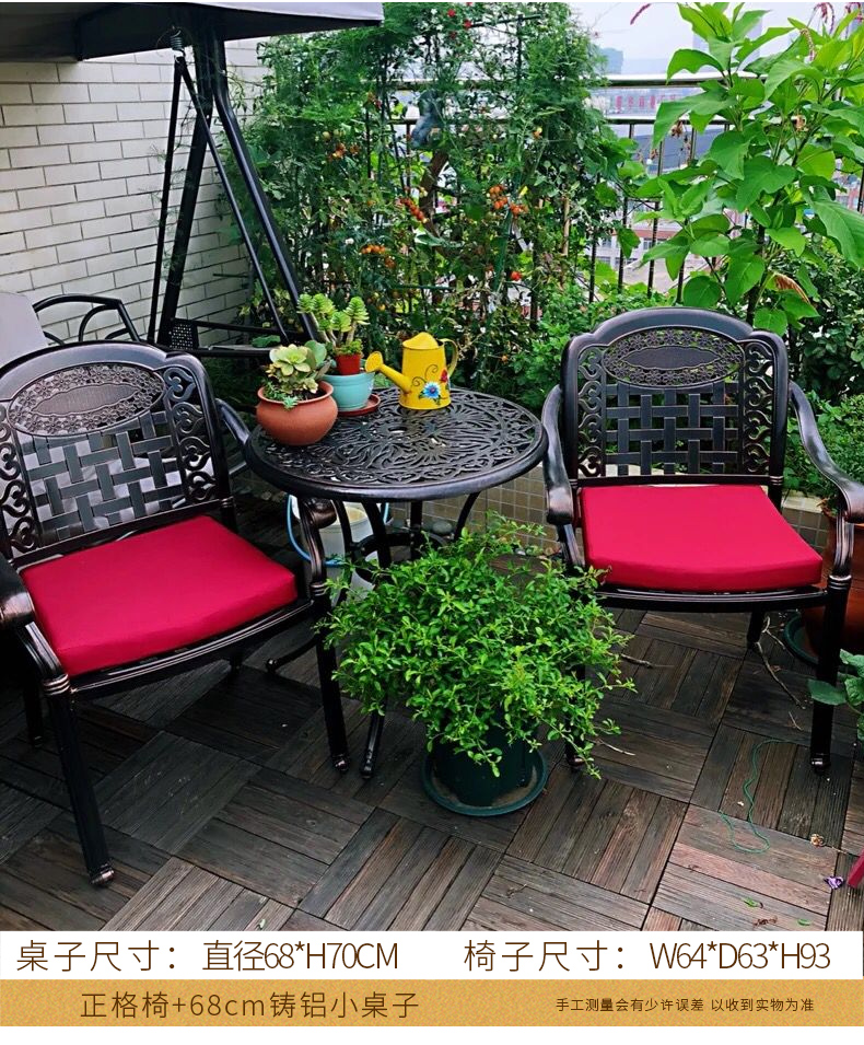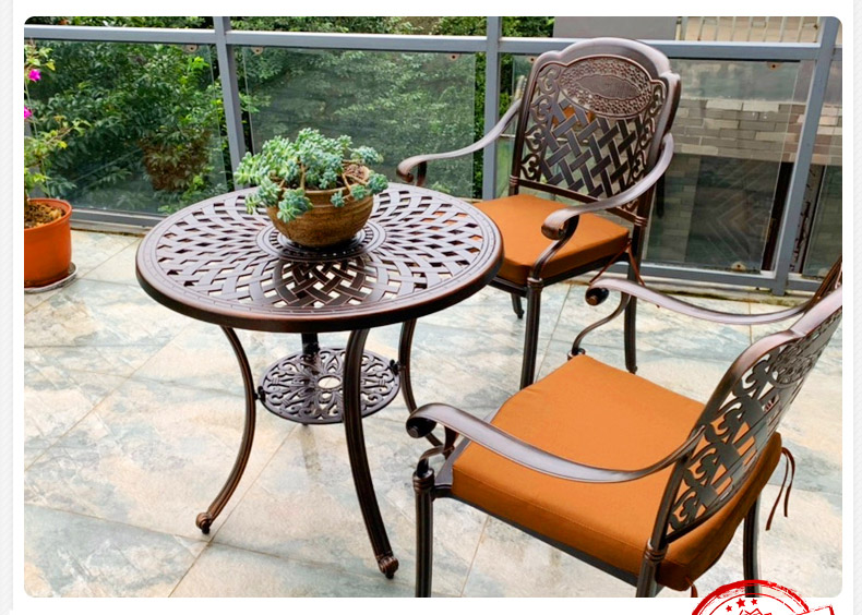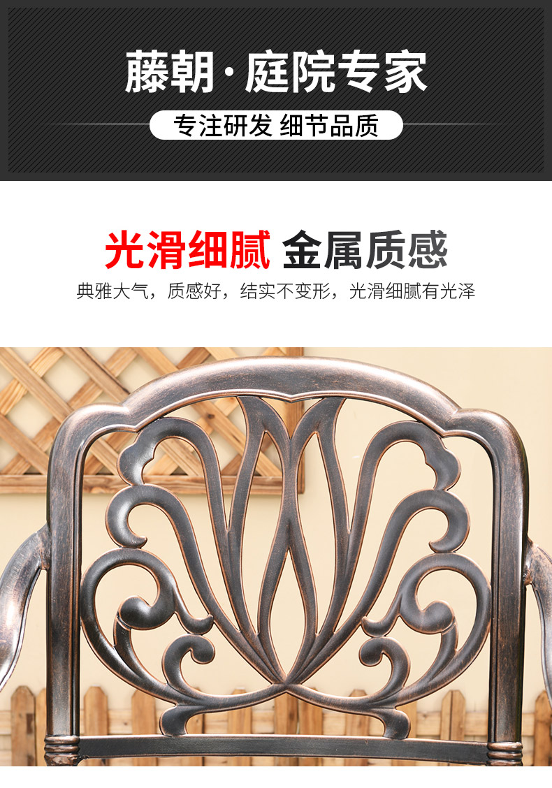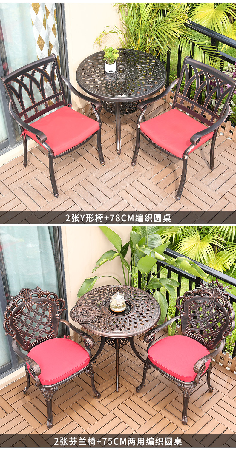 产品简介:藤朝欧式阳台茶桌椅三件套泡喝茶两用休闲铸铝美式桌椅小茶几组合...