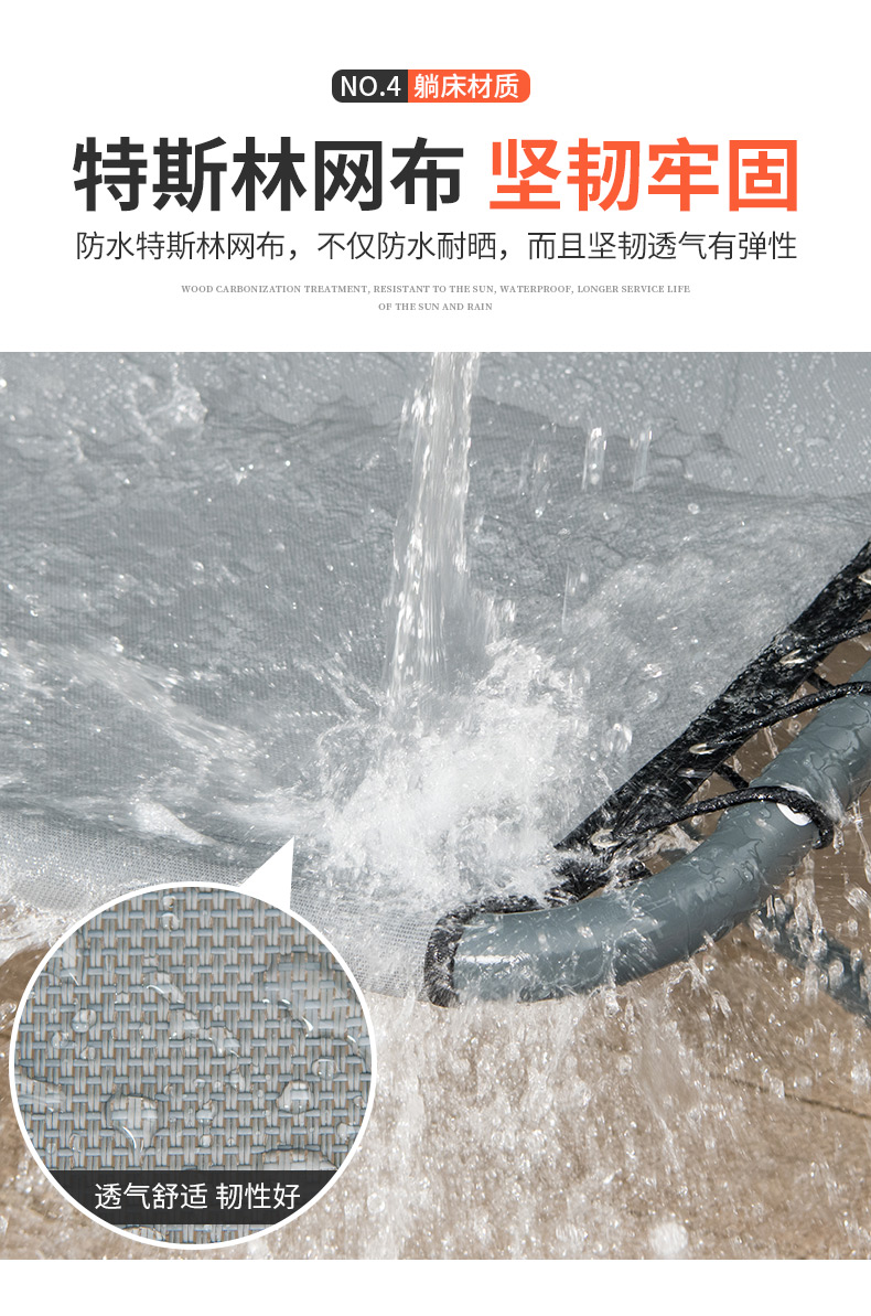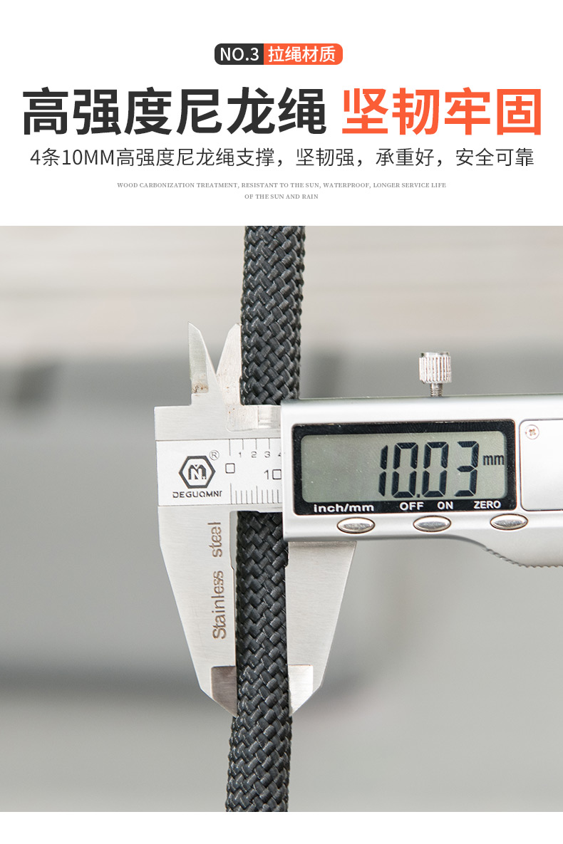 户外躺床秋千,4根10MM尼龙绳支撑,结实稳固