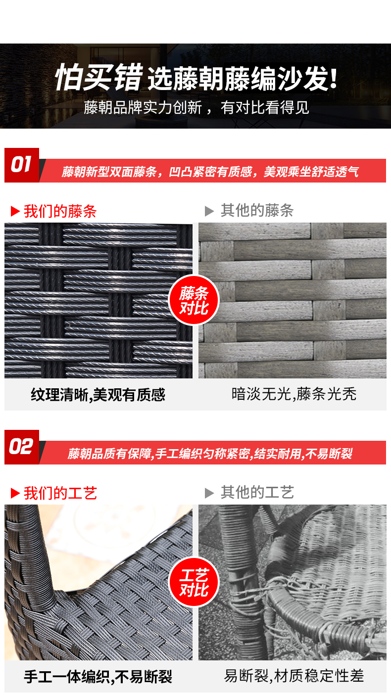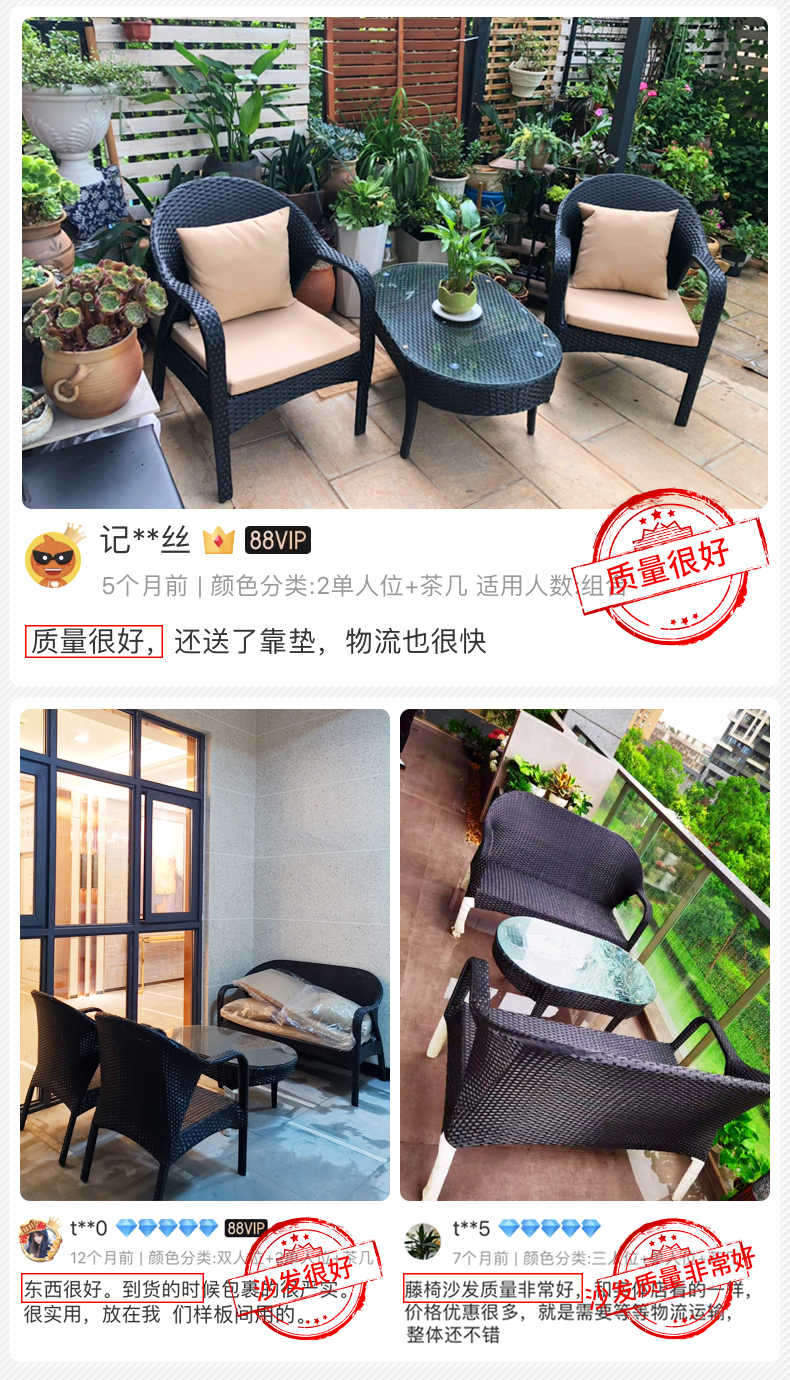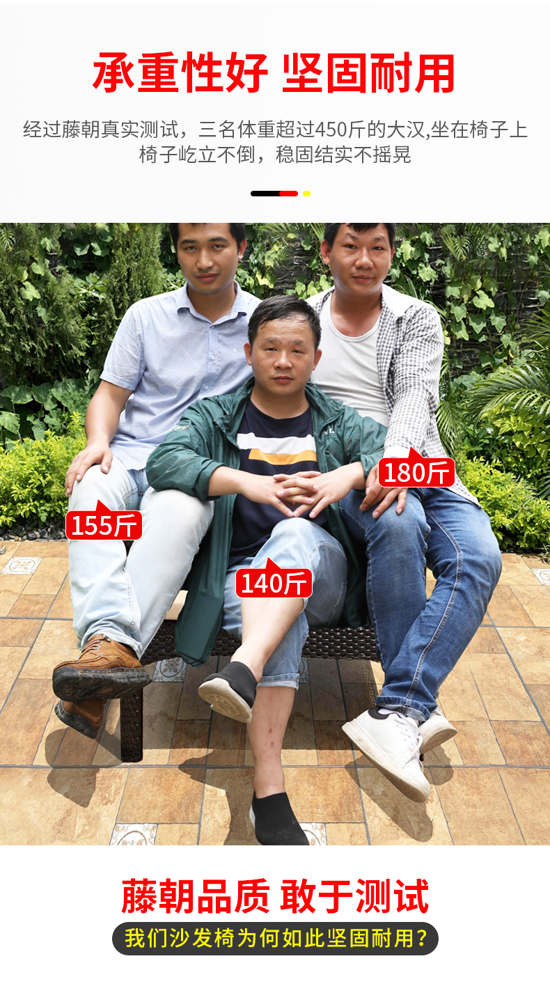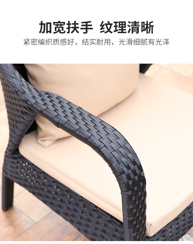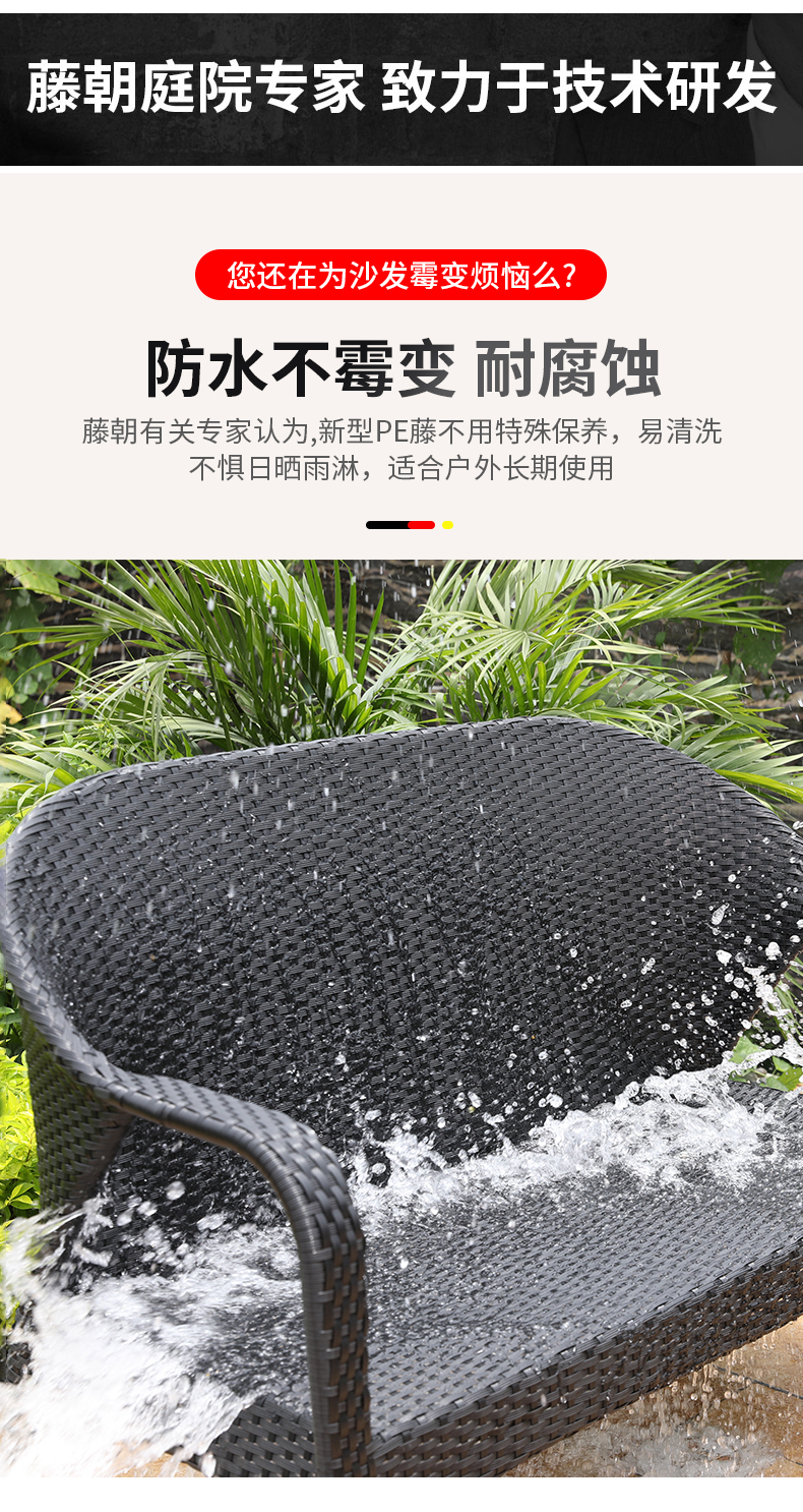 产品简介:相信很多小伙伴在装修自家庭院的时候,一定都设想过这样的场景:种满了各种花草的小院子,你躺在院子里的沙发上,一缕阳光从墙外伸进来,你半眯着眼一边抚摸着小猫咪,一边听着今天的新闻,真的好惬意对吧。这款庭院藤编沙发椅,防水耐晒,舒适透气,是户外沙发的不二选择...