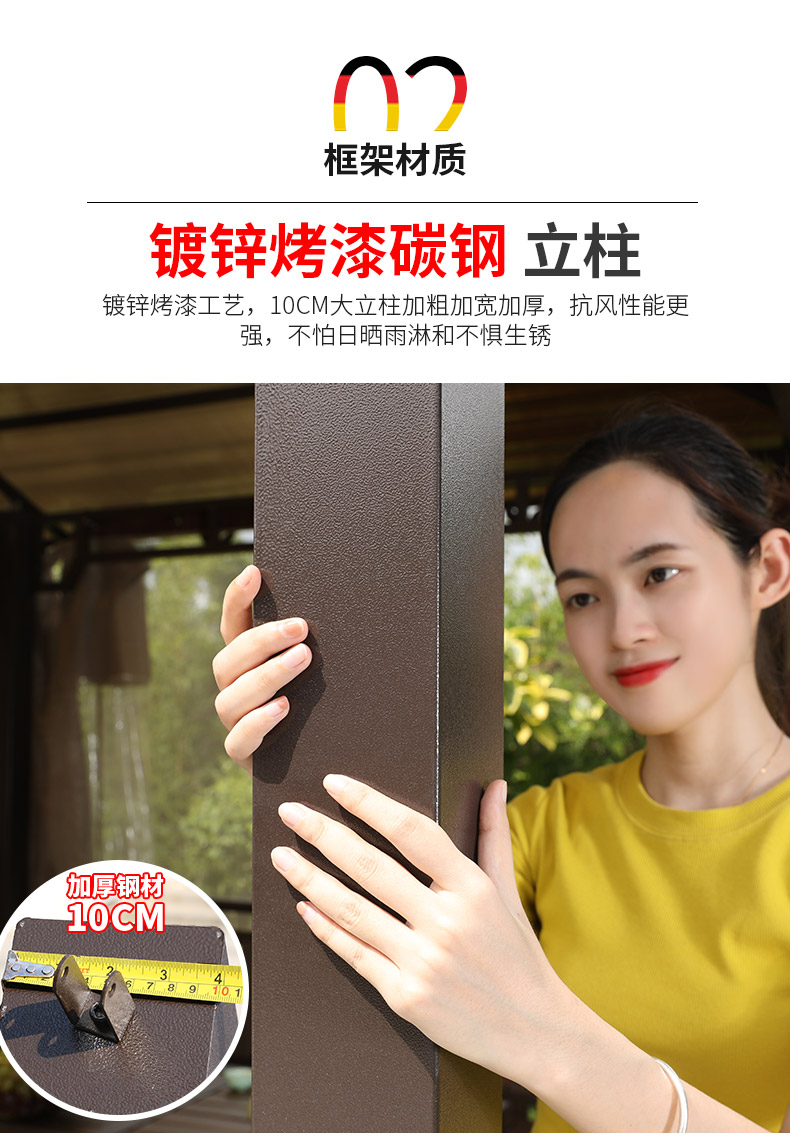 产品简介:夜晚可照明,庭院凉亭日夜两用,抗暴风雨,放庭院有档次的花园凉亭...