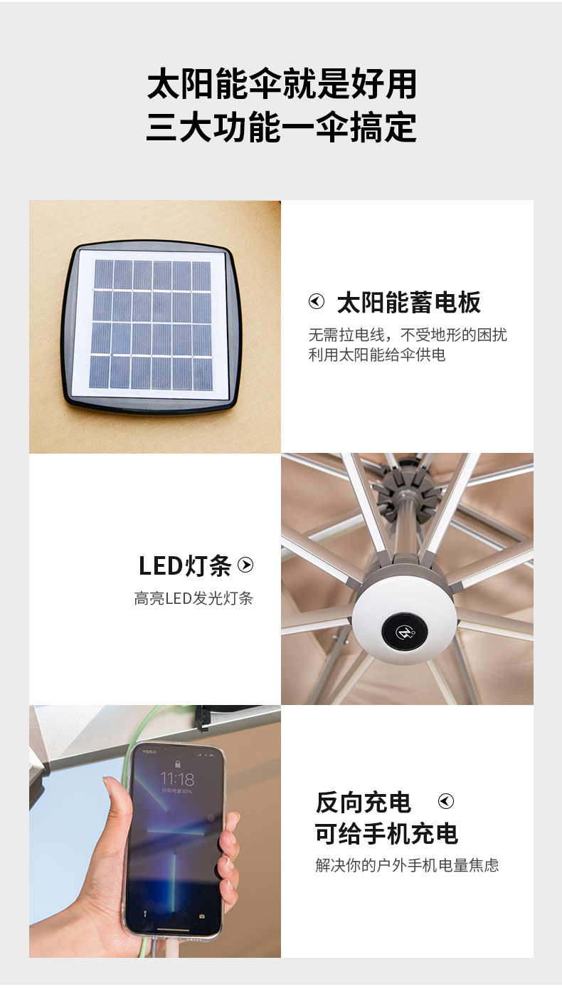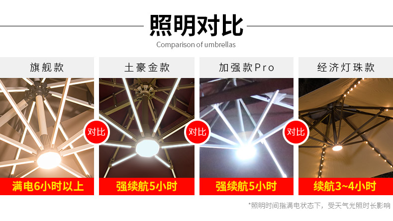 户外太阳能罗马照明遮阳伞