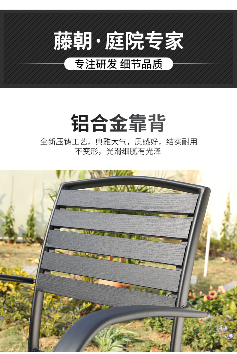 产品简介:藤朝铝合金户外庭院桌椅组合室外院子露天台休闲铸铝花园塑木桌椅...