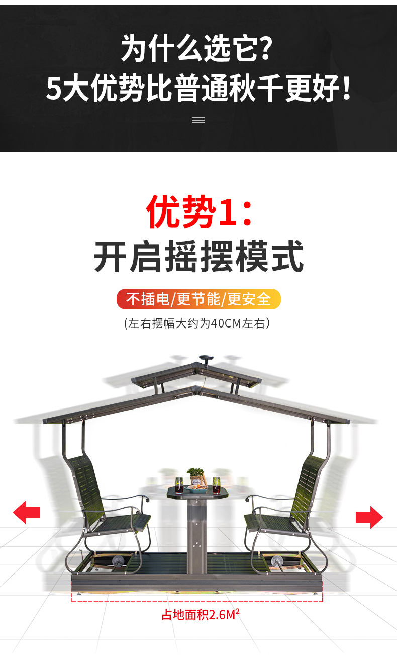 斯里卡兰阳光板户外庭院秋千,太阳能全年0电费